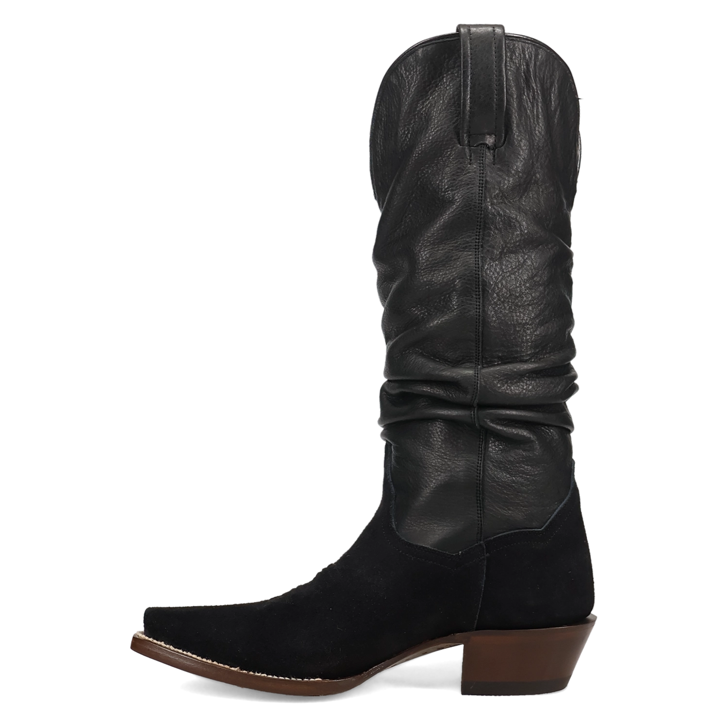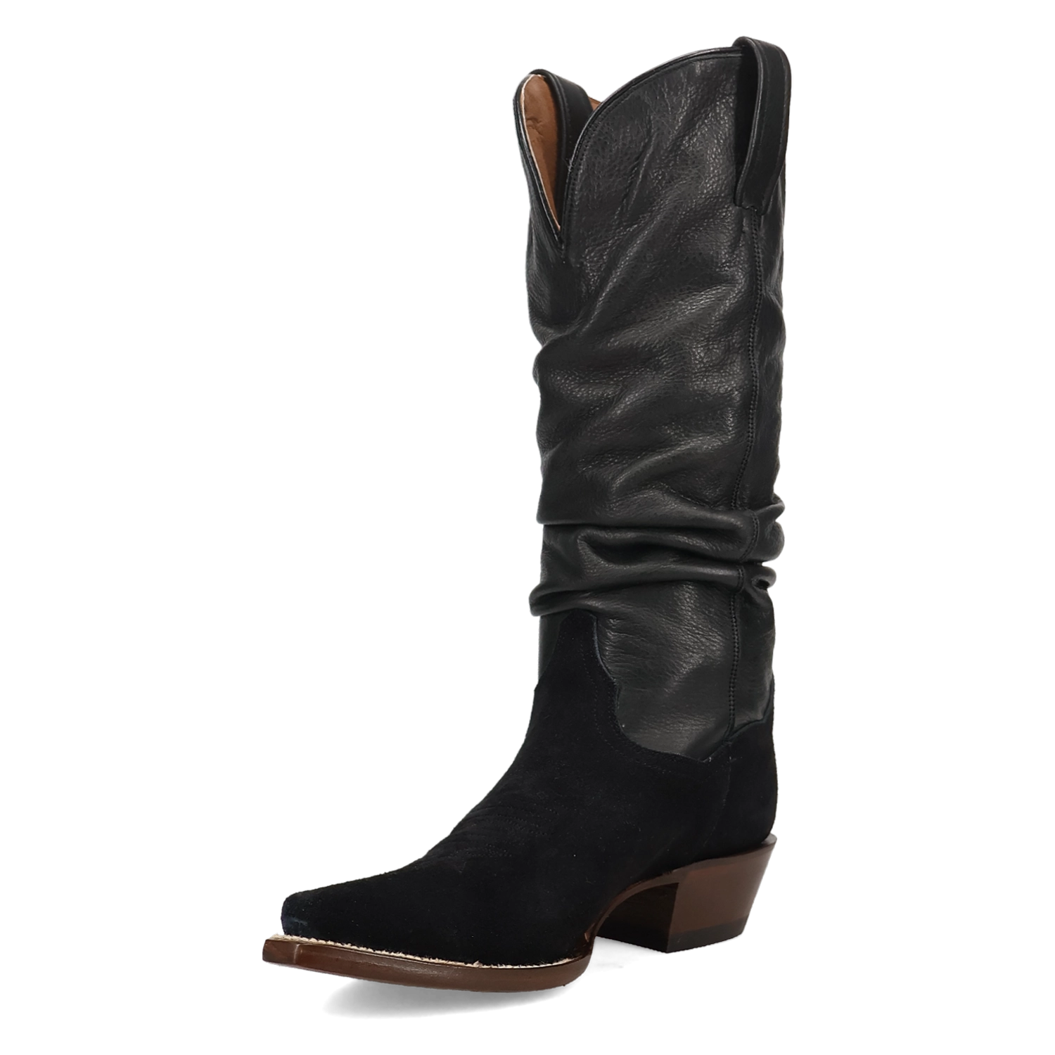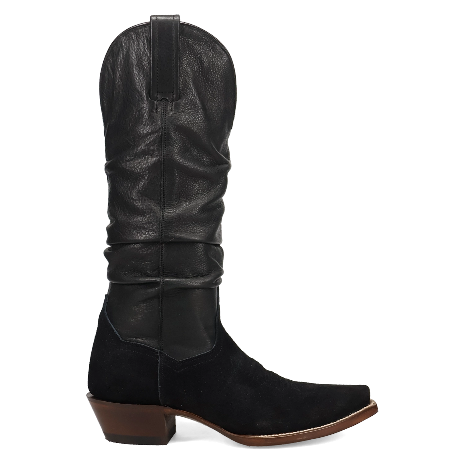 The Dan Post Women's Suede Cowgirl Chic Boot blends classic Western charm with modern sophistication. Crafted from soft suede leather, this boot features a 14-inch shaft and 12-inch circumference that fits comfortably while adding a sleek, stylish silhouette. The snip toe and cowboy heel maintain traditional Western flair, making it perfect for everyday wear or special occasions.