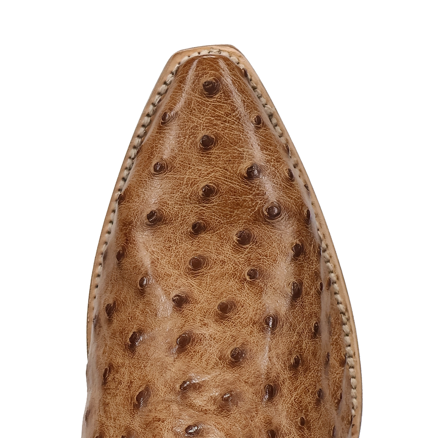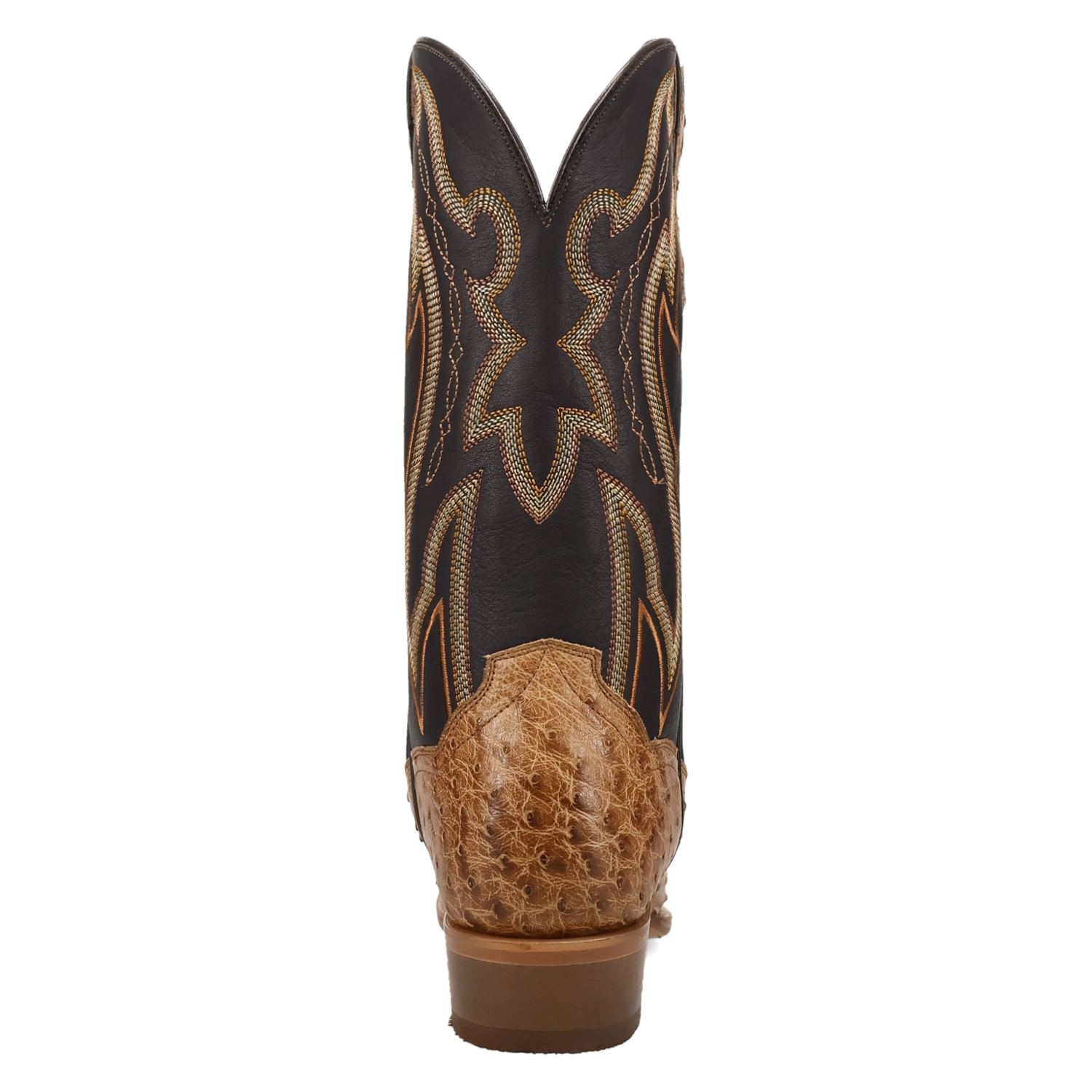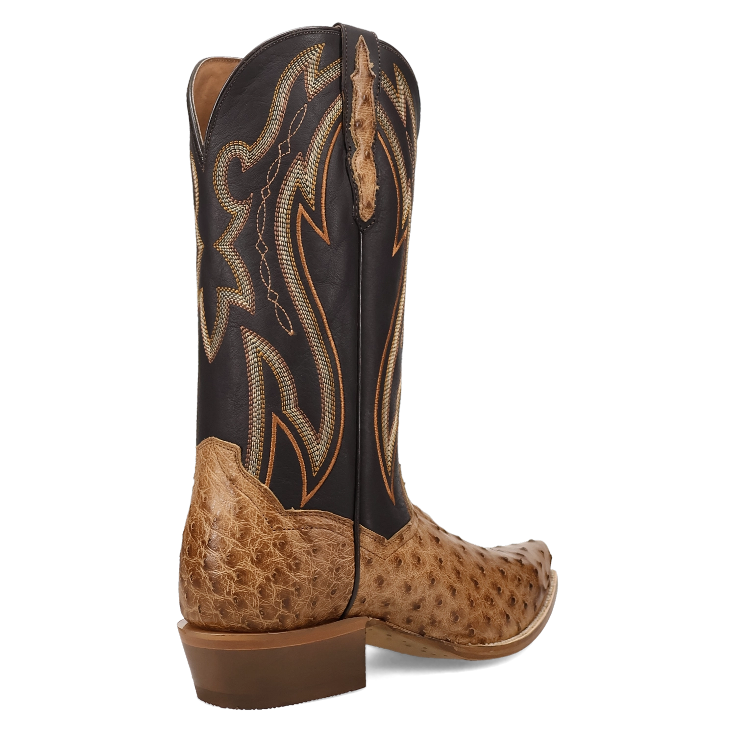 This men’s boot showcases premium ostrich leather for a bold, distinguished look. The 13-inch shaft is detailed with classic Western embroidery, giving it a timeless edge. Designed with a snip toe and 1 3/8-inch cowboy heel, it delivers both style and tradition.
