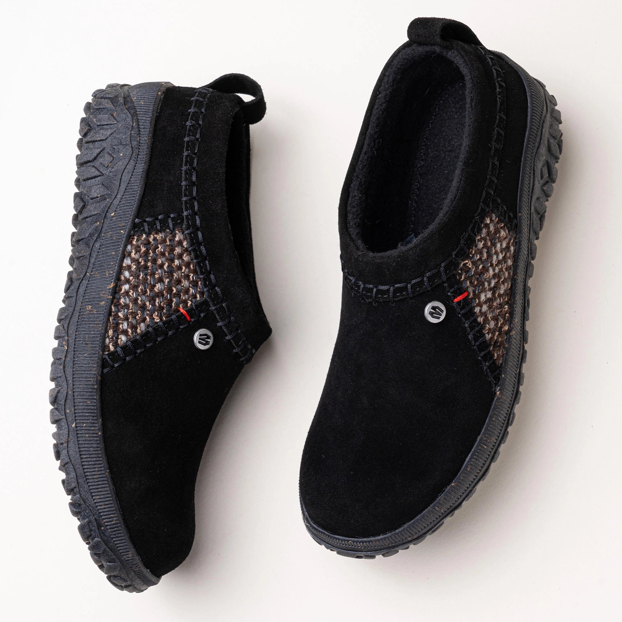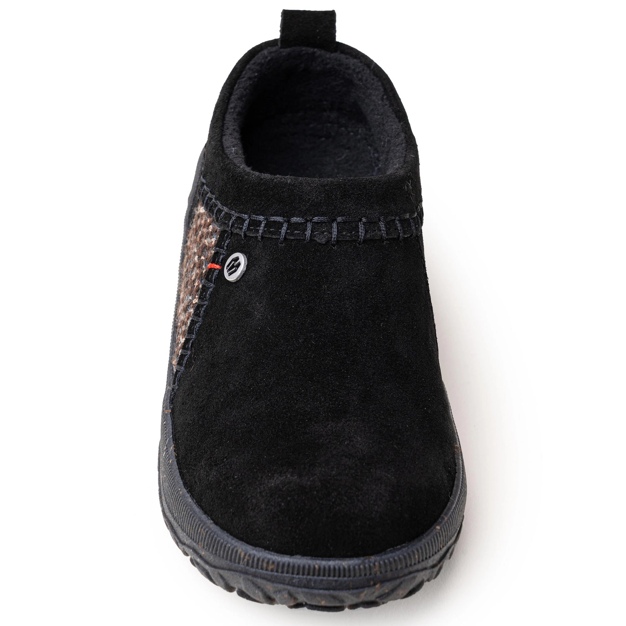 The Minnetonka Tamarra slipper is designed for warmth, comfort, and effortless everyday wear. Crafted with a soft suede upper and lined with cozy fleece, this clog-style slipper wraps your feet in warmth while remaining breathable and comfortable. The fabric detailing adds a distinctive touch that elevates the classic clog silhouette.