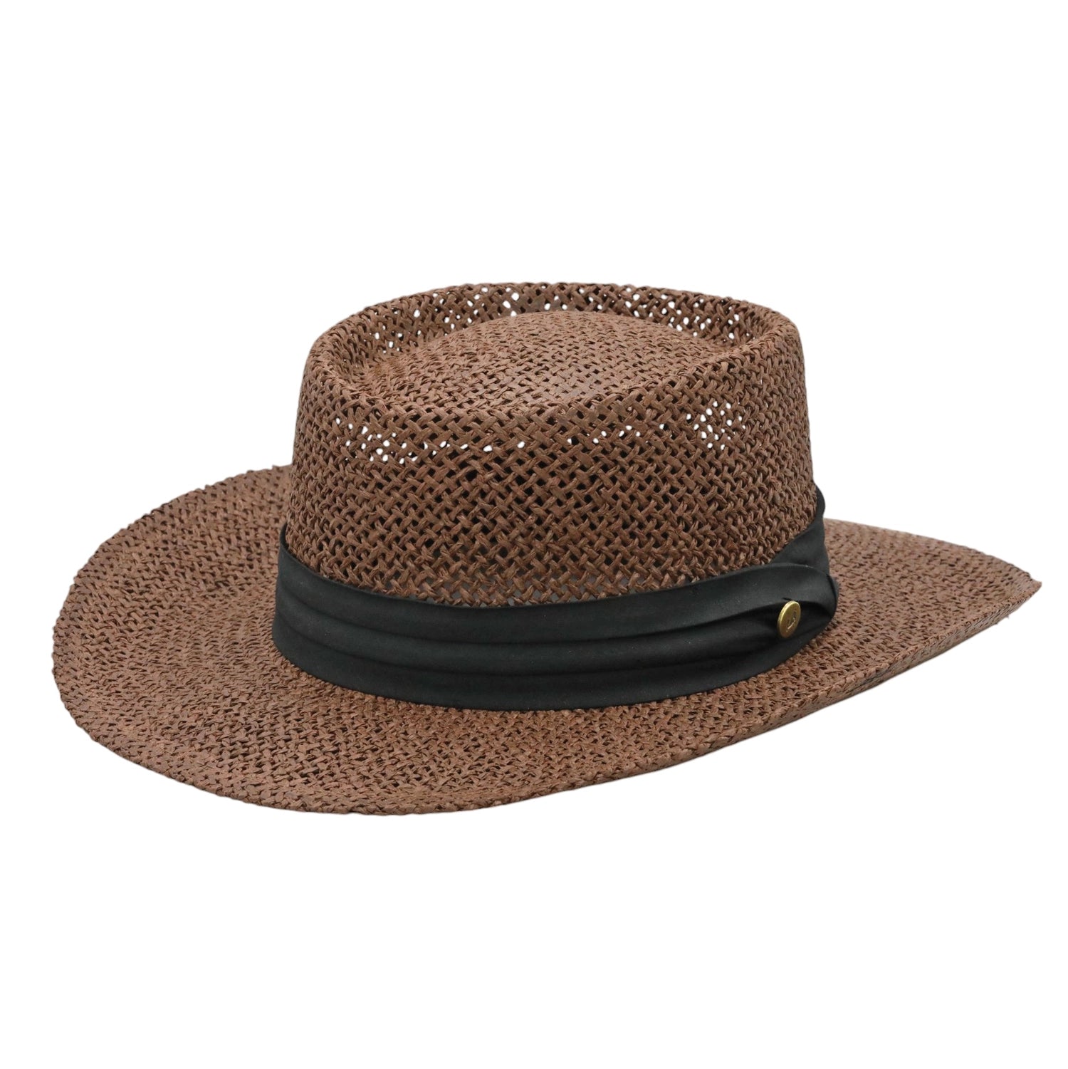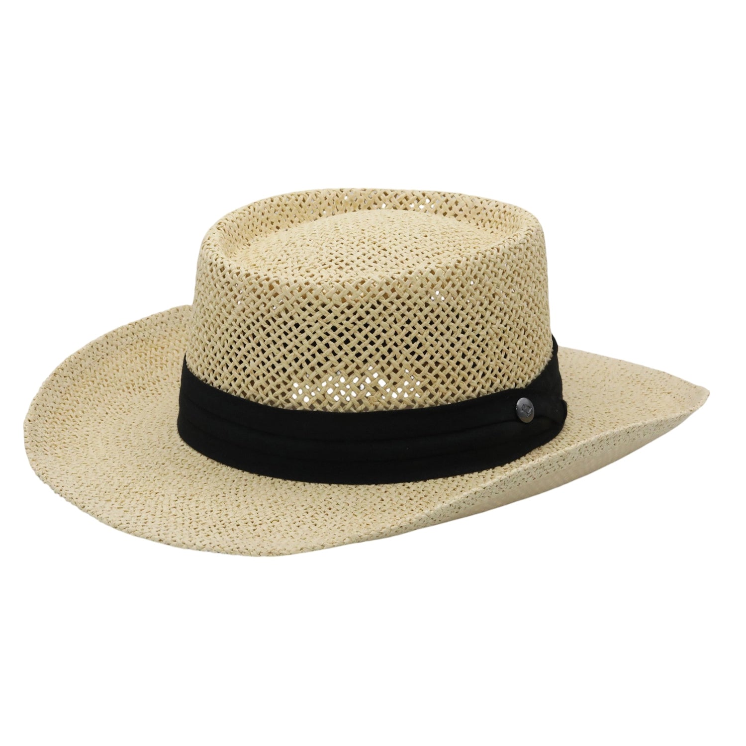 The Peter Grimm Torrey hat offers a timeless gambler silhouette with a sleek, structured look. Crafted from 100% Toyo straw, this hat provides UPF 50+ sun protection, making it an ideal companion for sunny days. The 3" brim and underbrim lining help block glare while keeping you cool and comfortable.