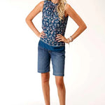 Roper 00721 Paisley Border (Blue) - Women's Sleeveless Shirt