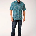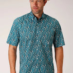 Roper 1449 Upstream Paisley (Blue) - Men's Short Sleeve Shirt