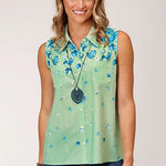Roper 1545 Summer Floral (Green) - Women's Sleeveless Shirt