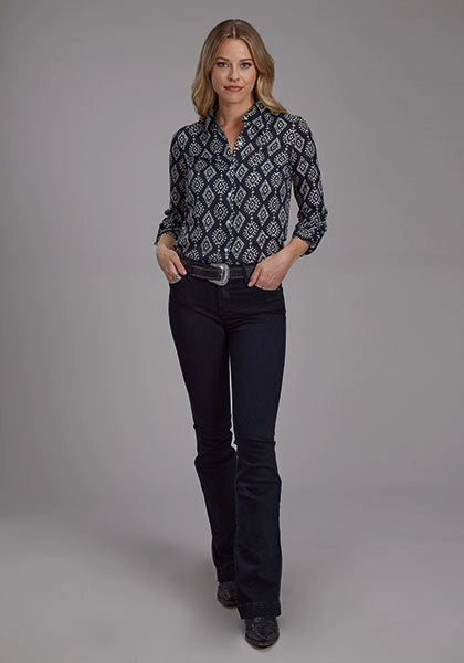 Roper 2133 Ikat Print (Black) - Women's Western Blouse