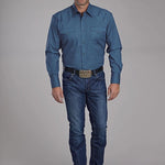 Designed with a one-point curved front yoke into the neck, one-point curved back yoke, and two one-point pockets with curved flaps, this shirt features a striking blue diamond print. Signature Roper "R" embroidery adds a classic western detail, completing the timeless appeal of this versatile long sleeve shirt.