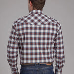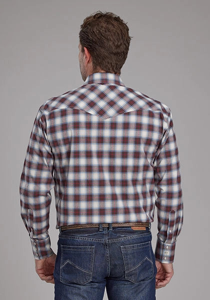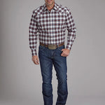 The Stretch Brown Plaid Long Sleeve Shirt from the Amarillo Collection combines classic western style with a modern stretch fabric for superior comfort and ease of movement. Its snap front closure and three-snap cuffs offer practical functionality while maintaining a timeless western look.