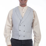 Designed for both style and practicality, this Herringbone Point Bottom Vest offers a distinguished, classic look. Featuring thin notched lapels accented with black trim, it exudes timeless sophistication. The vest includes one single welt chest pocket and three lower double welt pockets, providing ample storage, while a five-button front closure and adjustable back strap ensure a perfect fit.
