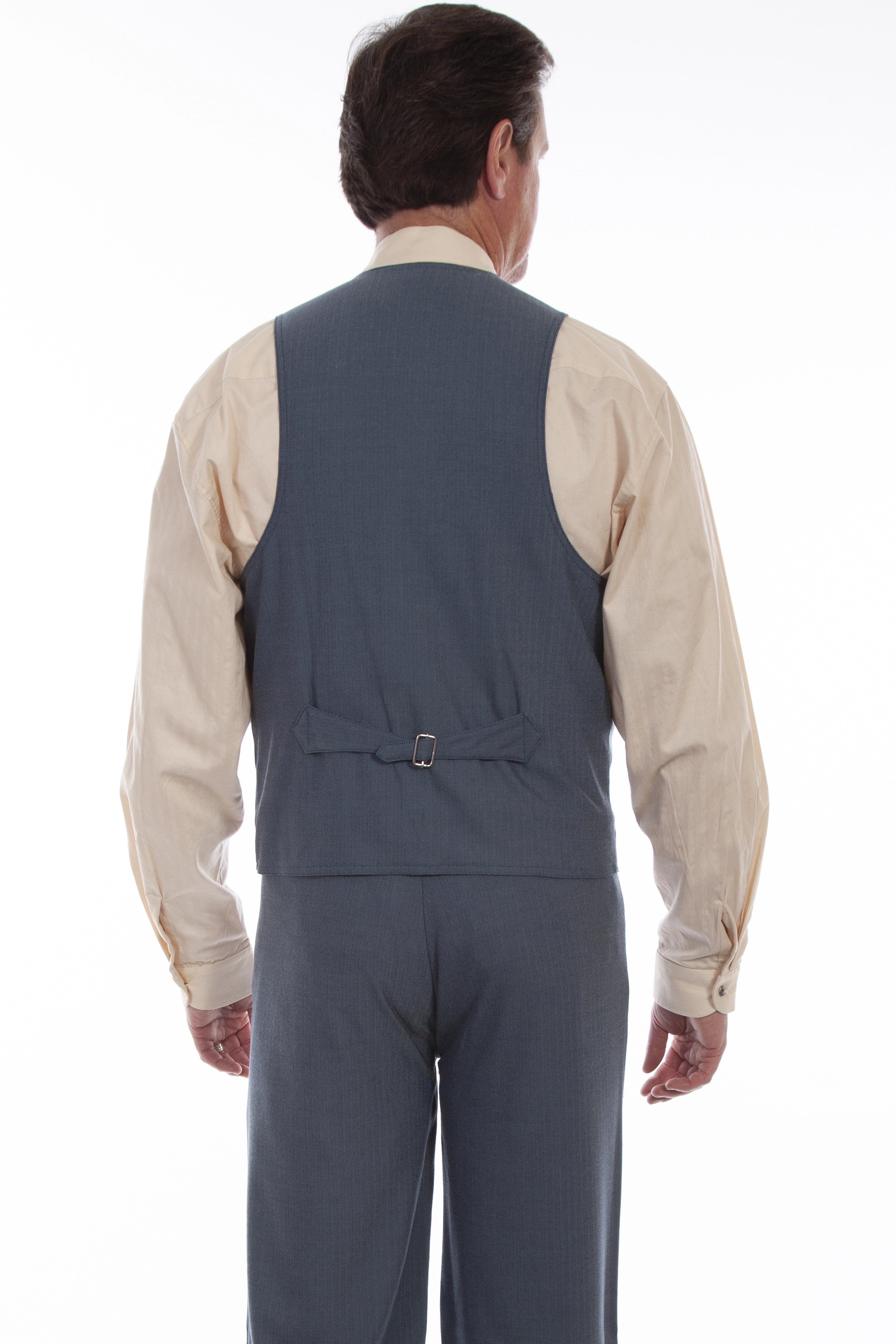 Exude subtle sophistication with this durable herringbone vest, featuring classic notched lapels and a five metallic button front closure. Four front welt pockets provide practical storage, combining style with functionality.