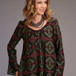 Stetson 00873 Blanket Print Peasant (Brown) - Women's Blouse