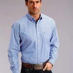Featuring a button-down collar, adjustable two-button mitered cuffs, and a classic button front with stacked pearl logo buttons, this shirt combines functionality with timeless Western style. Authentic detailing like the "Stetson" embroidery on the right sleeve placket adds subtle flair, making it a versatile staple for any wardrobe.