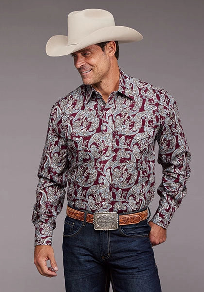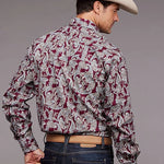 The Stetson Men's Summer III Paisley Print Cotton Poplin Shirt combines lightweight comfort with bold Western-inspired style. Made from 100% cotton poplin, it is breathable and soft, ideal for all-day wear. The 1-point ultra deep curved back yoke provides structure, while the classic snap front with logo snaps adds authentic Western flair.
