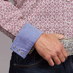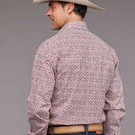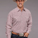The Stetson Men's Summer III Allover Print Cotton Poplin Shirt offers lightweight comfort and classic Western styling for warm-weather wear. Crafted from 100% cotton poplin, it is breathable and soft, ensuring all-day comfort. The 1-point ultra deep curved back yoke provides structure, while the classic snap front with logo snaps adds authentic Western flair.