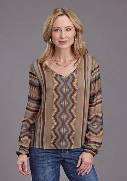 Stetson 2187 Sand Serape V-Neck (Tan) - Women's Blouse