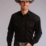 The Stetson Classic Western Shirt in Black is made from 100% cotton poplin, offering a lightweight, breathable, and comfortable fit. Its clean Western styling, including two flap pockets and 1-point front and back yokes, provides a structured look while maintaining a versatile, everyday appeal.