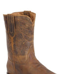 The Cassidy boot in rich waxy brown leather offers a timeless Western aesthetic with a modern touch. Its wide R toe and 10" shaft create a classic silhouette, while the stacked leather heel adds both style and practicality. The smooth leather finish enhances the boot’s visual appeal, making it perfect for both everyday wear and special occasions.