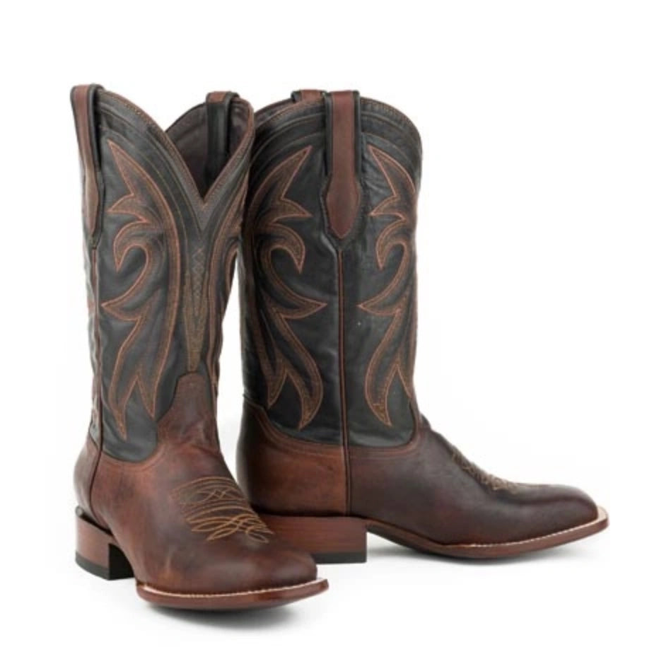 The Stetson Cody brings together timeless craftsmanship and refined Western style. A rich brown calf vamp is paired with a striking black calf shaft, elevated by intricate hand stitching and cording that highlight the artistry of true bootmaking. Its tall 13" shaft and classic silhouette create a bold, traditional look built to turn heads.