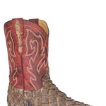 The Stetson Predator commands attention with its exotic vintage brown Pirarucu vamp, showcasing the unique scale pattern of this luxurious fish leather. The waxy red leather shaft creates a vibrant contrast, giving the boot a bold, stylish look. The square toe and 11" shaft provide a confident silhouette that suits both Western-inspired outfits and everyday wear.
