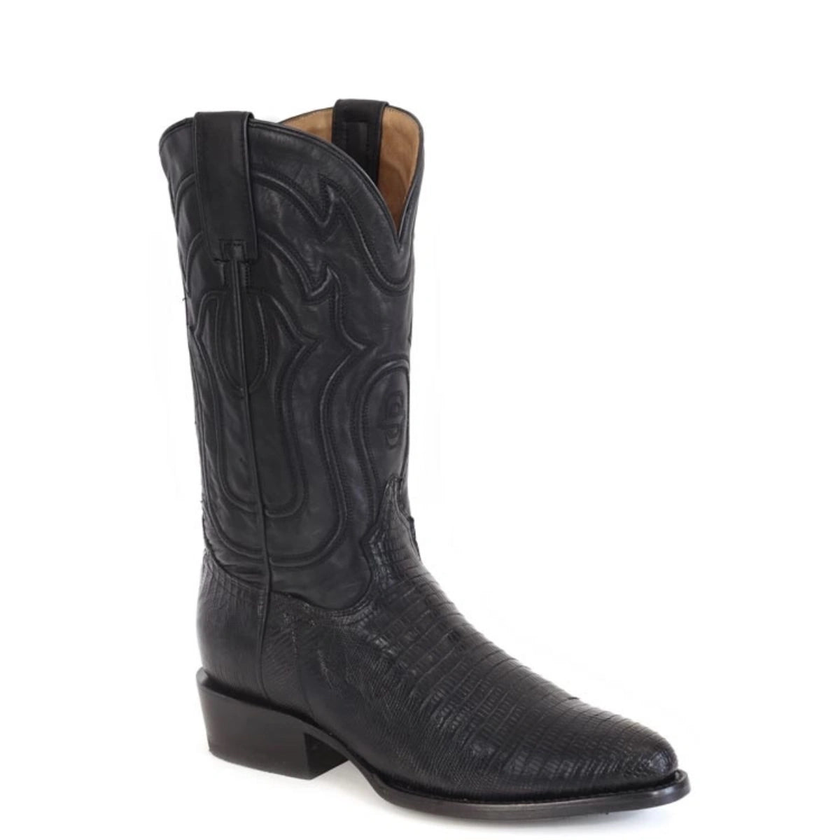 The Stetson Wayne is a refined Western boot that combines exotic texture with classic craftsmanship. Its black Teju vamp delivers a striking, luxurious look, while the cording design on the shaft adds elegant detail. The 13" shaft and R toe create a confident, timeless silhouette perfect for any Western-inspired wardrobe.