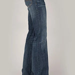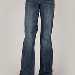 Sunrise to sundown, the Tin Haul 460 Ella Fit Double Gold Loop Pocket Trouser Jeans are built for the cowgirl who lives life on her own terms. With a flattering fit that sits just below the waist and a flared leg opening, these jeans are made to move with you—whether you're riding through open fields or kicking up dust at a country concert. The dark wash, accented with sanding and whisker details, gives them that perfect broken-in look, while the decorative loop stitching on the back pockets adds just the right touch of Western charm. Finished with Tin Haul’s signature branded buttons, rivets, and zipper, these jeans are as durable as they are stylish.
