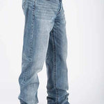 Detailed with contrast navy stitching and unique two-tone decorative designs on the back pockets, these jeans stand out with subtle Western flair. Tacking and whisker details add a broken-in look, while Tin Haul branded buttons, rivets, and zippers provide strength and authenticity. A dependable choice for everyday wear with standout personality.