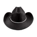 Crafted from faux vegan wool felt, this hat keeps it cruelty-free without sacrificing style. The classic cattleman crown and 4" brim bring that timeless cowgirl silhouette, while the rhinestone hatband adds just the right amount of sparkle to make you stand out in the crowd.