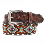 Nocona Adobe Trail Beaded Cross - Men's Leather Belt