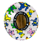 The hat's standout feature is the vibrant Grateful Dead Bear Patch on the front, a playful nod to the band's iconic imagery. The underbrim also showcases a delightful array of colorful Grateful Dead bears, adding a pop of color and a fun element that kids will adore. The adjustable chin cord ensures a secure and comfortable fit, so your child can run and play freely without worry.