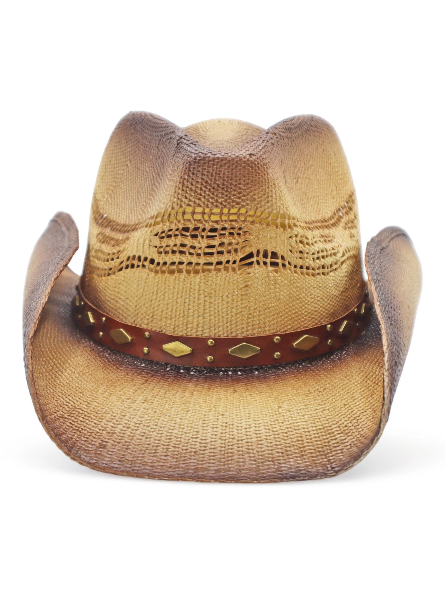 The Peter Grimm Newell hat is crafted from 100% matte weave Toyo straw, combining durability with classic Western style. Featuring a pinchfront crown and a 3 1/2" brim, this hat provides a refined silhouette while maintaining a casual, wearable look. The metal stud band adds a touch of edgy detail, perfect for those who want a subtle statement piece.