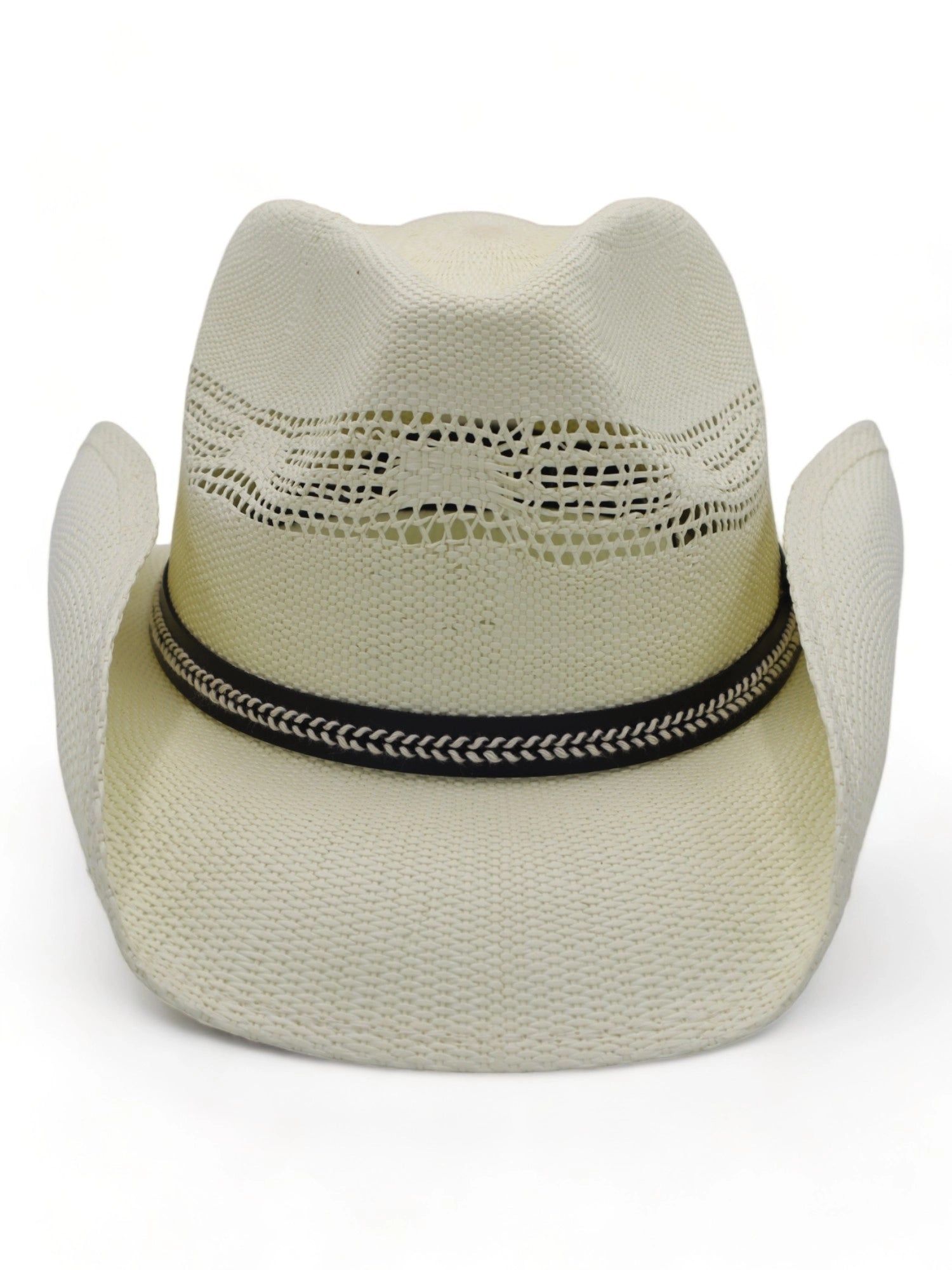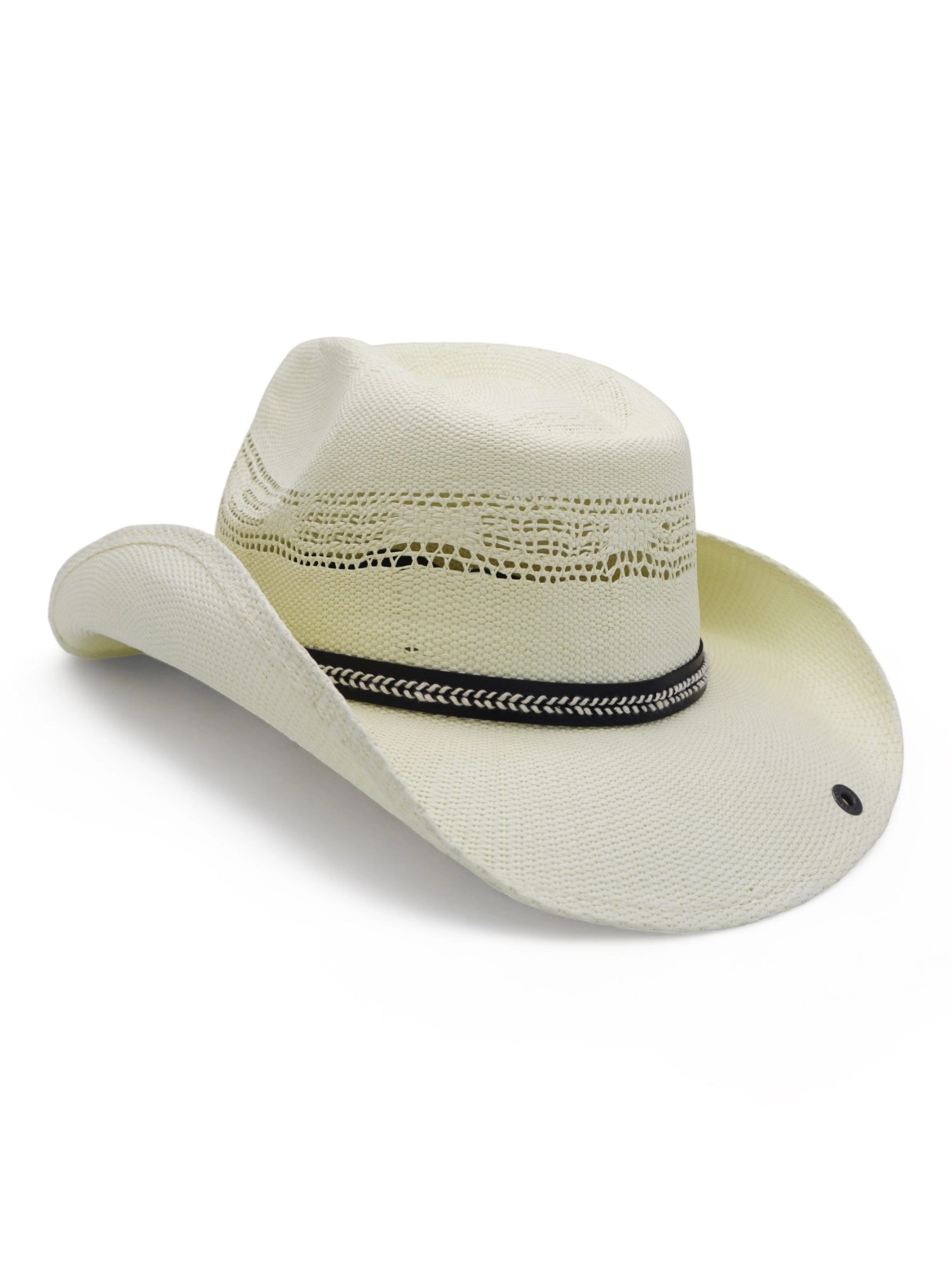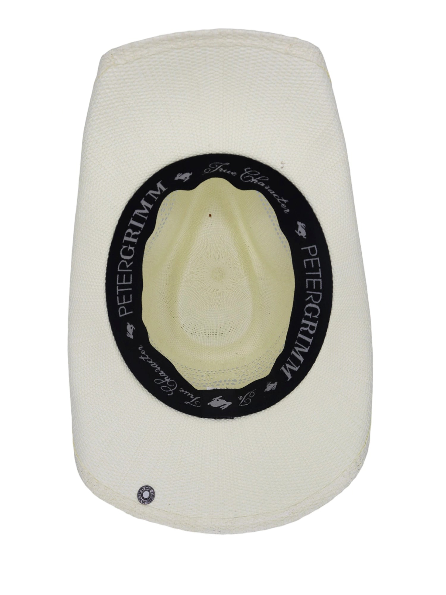 The Peter Grimm Pommel hat is a versatile and stylish accessory made from 100% matte weave Toyo straw. Its pinchfront crown and 3 1/4" wired brim create a sharp, structured look while maintaining flexibility for shaping to your preference. The elasta-fit inner band ensures a snug and comfortable fit, making it suitable for extended wear.