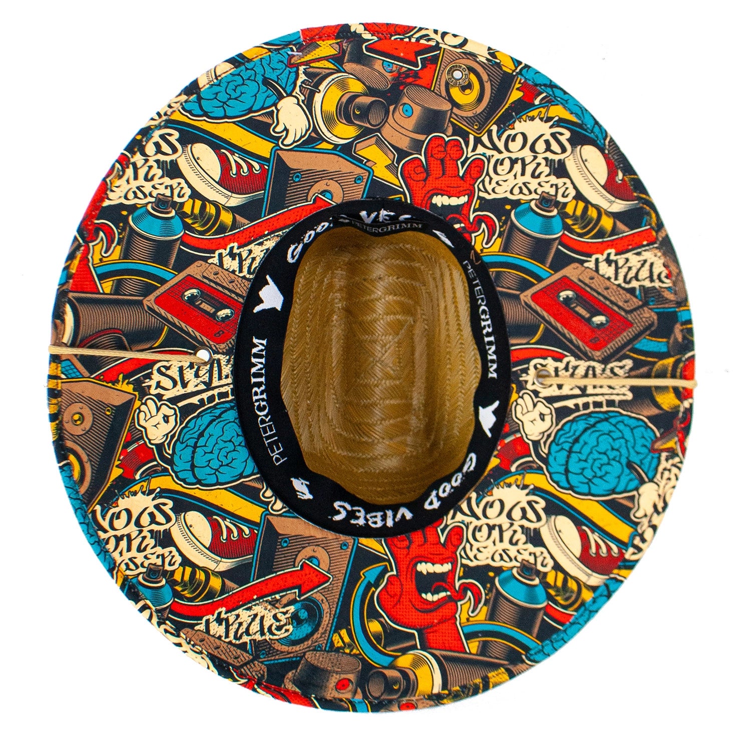 A wide 4.25-inch brim provides generous shade, while the chin cord helps keep the hat secure in breezy conditions. Featuring a Peter Grimm patch on the crown and a graffiti design on the underbrim, the Spray On stands out with artistic flair and classic lifeguard shape.