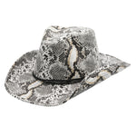 The Peter Grimm Viper hat makes a bold statement with its striking printed snake pattern. Crafted from durable PU material, this hat features a classic pinchfront crown and a 3 1/2" brim, offering both style and sun protection. The corded hat band adds texture and complements the edgy design, making it perfect for fashion-forward wearers.