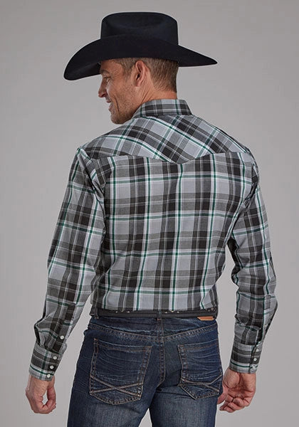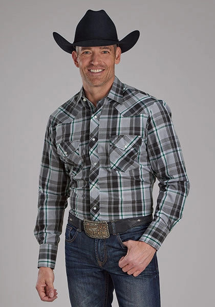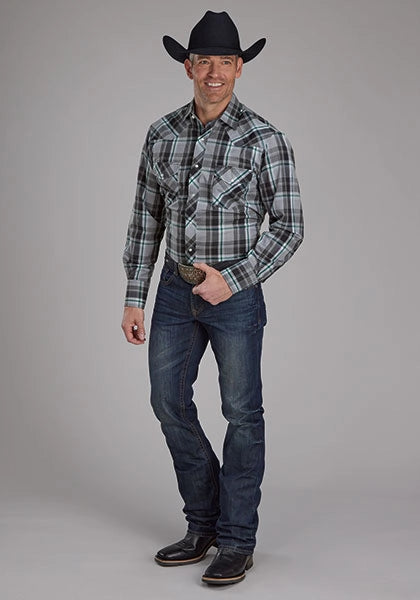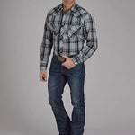 This Karman Classics western shirt features a timeless grey, black, and white plaid pattern crafted in a soft yet durable cotton/poly blend. The standard front and back yokes provide a classic western fit while allowing for comfort and ease of movement. Its breathable fabric makes it ideal for all-day wear, whether on the ranch, at casual outings, or layered for cooler days.