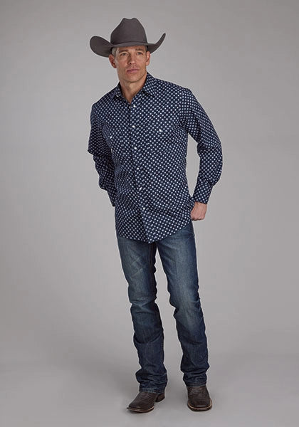 Roper 2284 White Squares (Navy) - Men's Western Shirt
