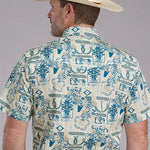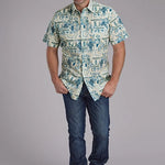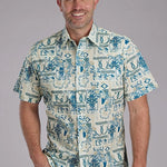 This men’s short sleeve performance Y/D allover print shirt from the West Made Collection delivers bold western style with a comfortable, breathable fit. Crafted from 100% cotton poplin, the tropical resort-inspired print adds eye-catching appeal, while the garment-washed finish gives the shirt a soft, broken-in feel.