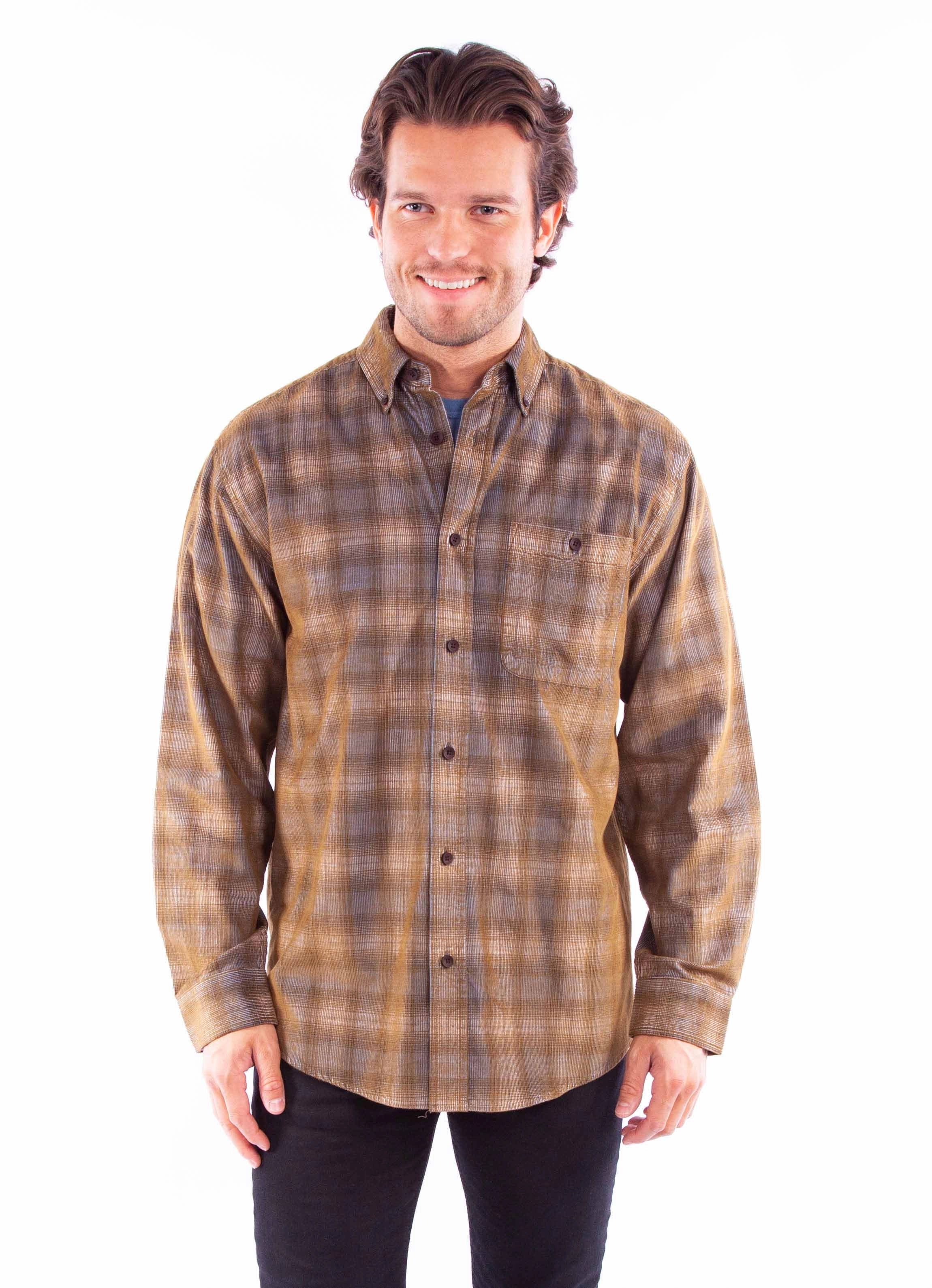 The Scully One Pocket corduroy plaid shirt combines classic Western styling with everyday comfort. Crafted from 100% cotton corduroy, it offers a soft, durable fabric that is perfect for layering or wearing on its own.