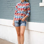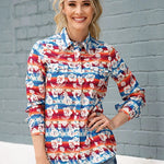 The Tin Haul Women’s Hawaiian Serape Snap Shirt brings a vibrant island twist to classic Western style. Made from lightweight cotton lawn, this shirt is breathable, soft, and perfect for warm-weather wear. The bold serape-inspired print adds tropical color and flair, making it a standout piece for any casual day or summer outing.
