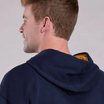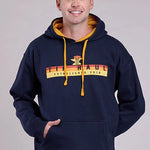 The Tin Haul Guys Navy Hooded Sweatshirt delivers cozy comfort and bold Western-inspired style. Crafted from a cotton/poly fleece blend, it offers a soft, durable feel perfect for all-day wear. The contrast gold jersey-lined hood adds visual interest and extra comfort, while the front kangaroo pocket is ideal for keeping hands warm or storing small essentials.