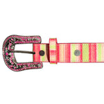 Bright, fun, and full of western flair, the Angel Ranch Striped Light Up Cactus Belt is every little cowgirl’s dream accessory. Featuring a playful mix of pink, yellow, and cream serape stripes, this belt adds sparkle and color to any outfit. The 3D light-up cactus designs shine with every move, while the pink rhinestones along the strap and buckle add that extra bit of cowgirl glam.