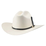 Designed with a natural-colored hat body and a classic Cattleman Crown, this hat embraces a traditional Western look while adding a fashionable edge. The 3 3/4" brim provides ample shade and structure, making it a versatile choice for any event. The black leather hatband, accented with a silver and gold buckle and a striking feather, creates the perfect contrast, while the feather pops beautifully, adding an eye-catching detail.