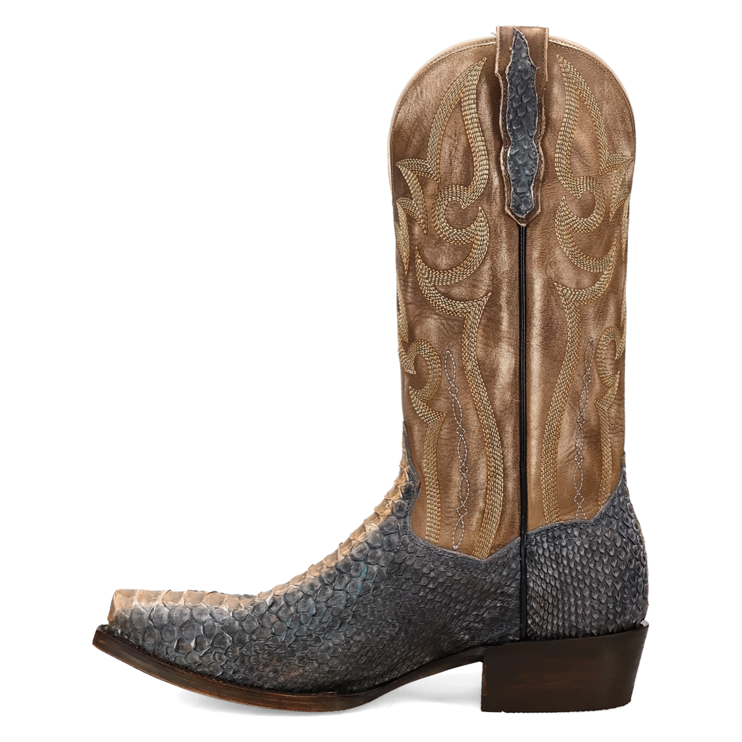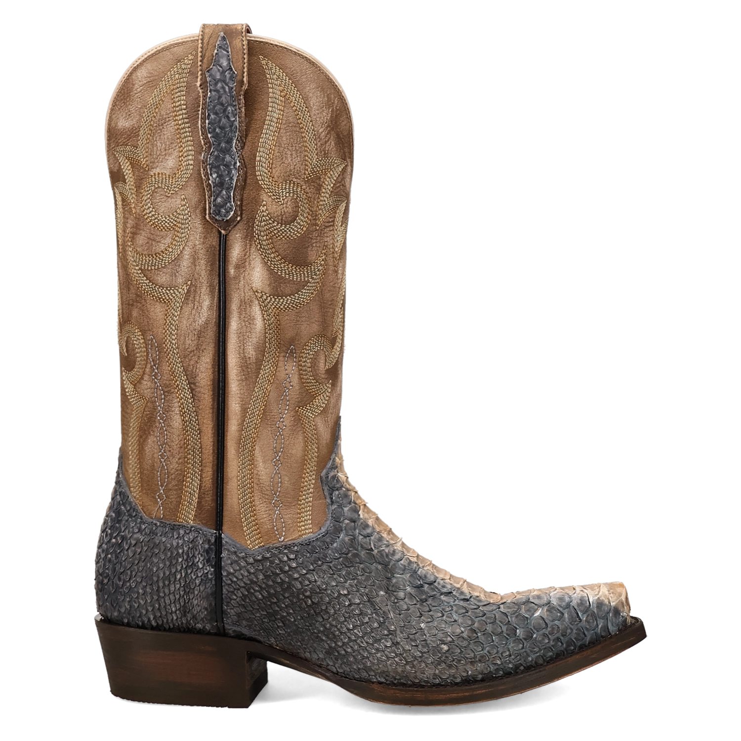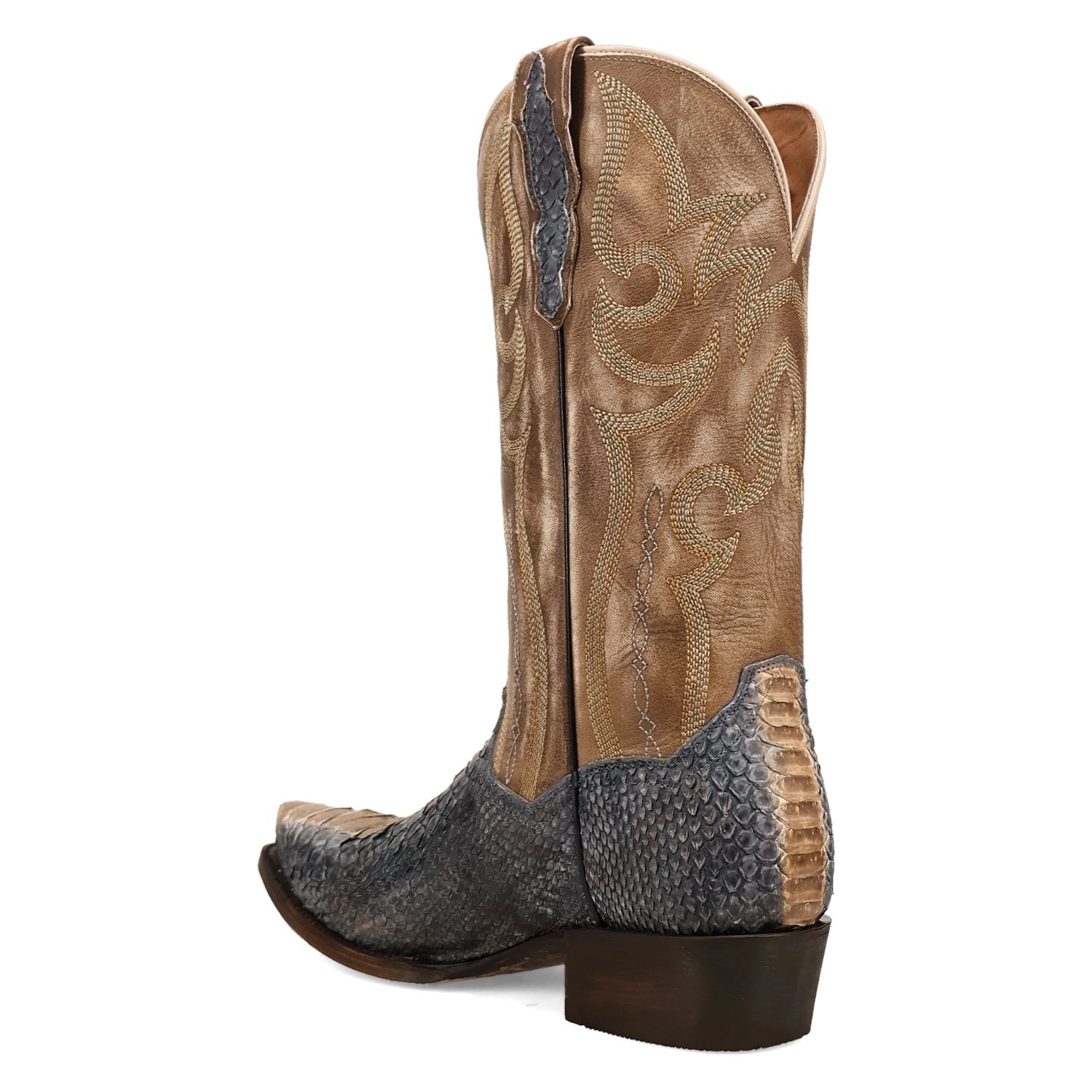 The Stryker boot makes a striking impression with its genuine python leather foot and expertly detailed Western embroidery along the 13-inch shaft. This exotic design delivers an unmistakable statement of rugged sophistication, crafted for the man who appreciates both bold style and fine craftsmanship.