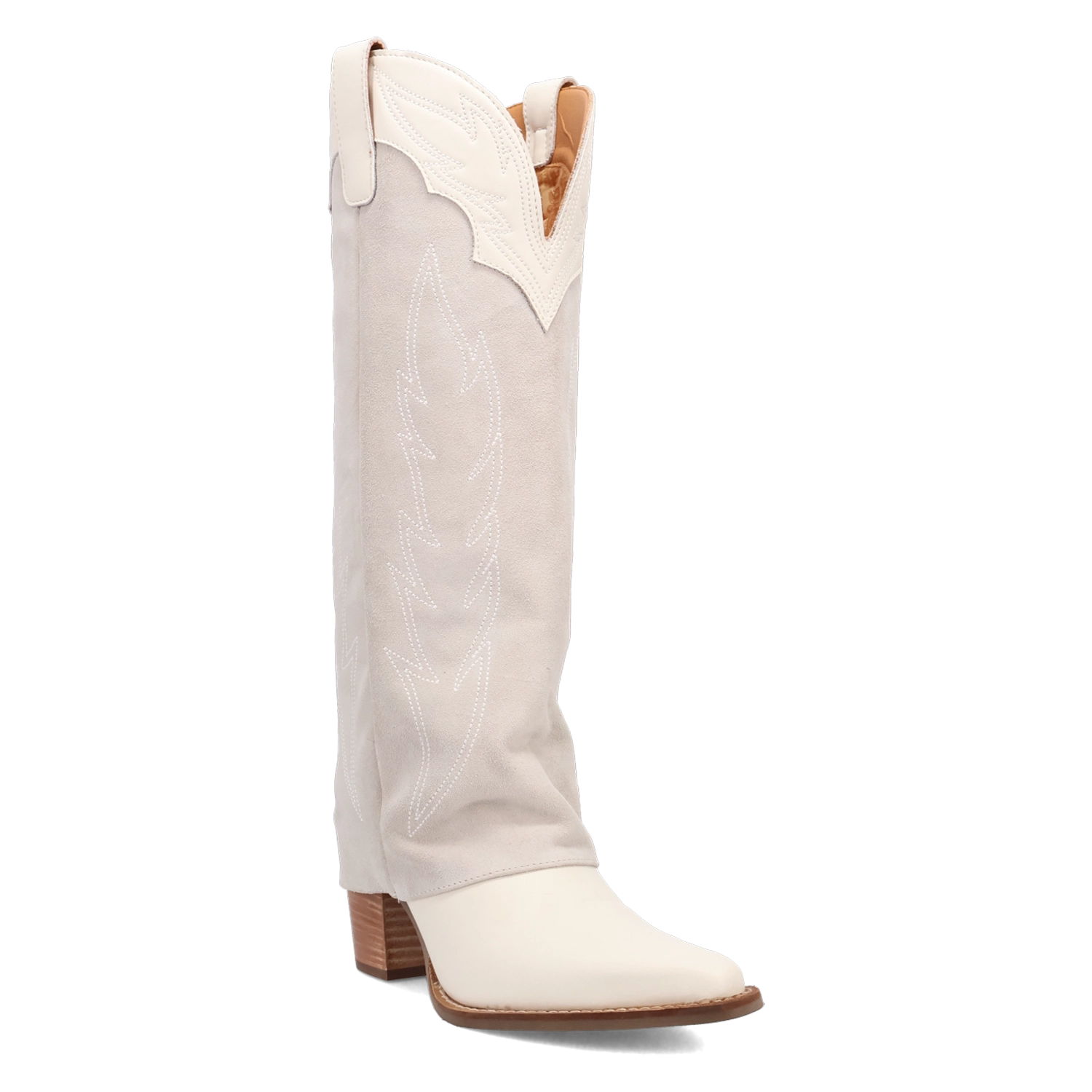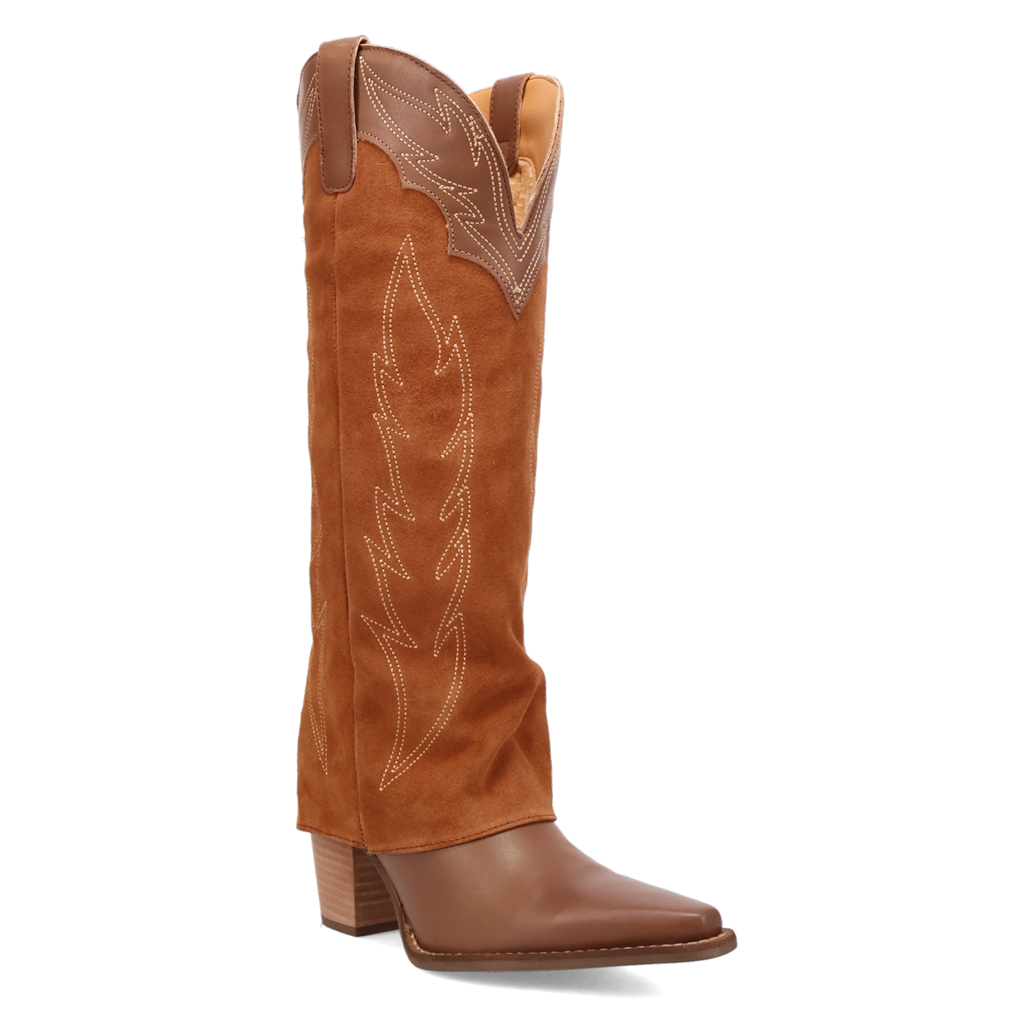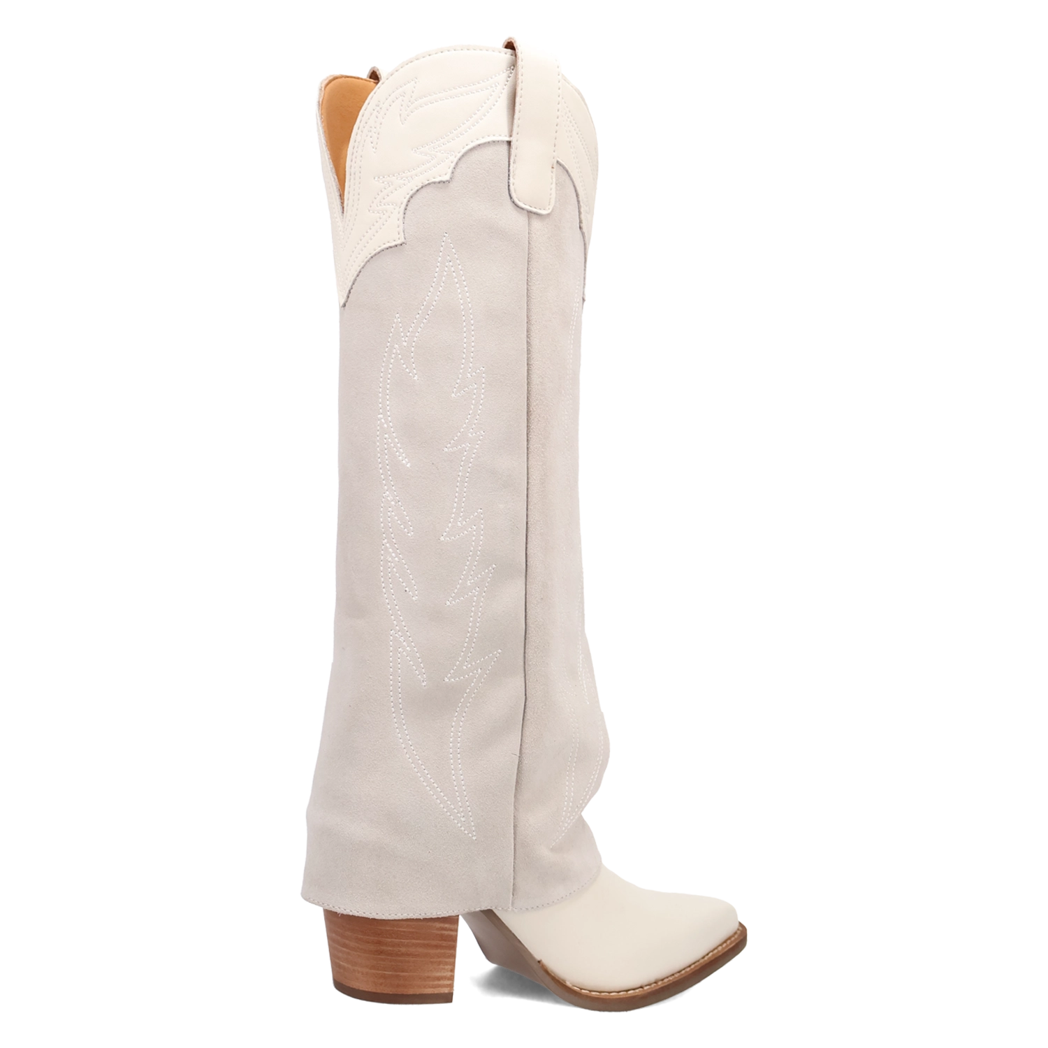 The Dingo Wild Fire boot is made to steal the spotlight. Crafted from soft suede leather, it rises to a striking 16" shaft that hugs the leg with a 12" circumference for a sleek, flattering fit. Intricate Western stitching dances across the shaft, adding just the right touch of detail to this bold silhouette.