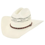 The vented crown enhances airflow, keeping you cool even during the hottest days. Its standout feature is the two-toned braided hat band, which adds a unique flair that beautifully contrasts with the ivory base, making it a versatile choice for any occasion. Whether you're dressing up for a night out or enjoying a casual day on the ranch, this hat pairs seamlessly with everything from jeans and boots to dressier attire.