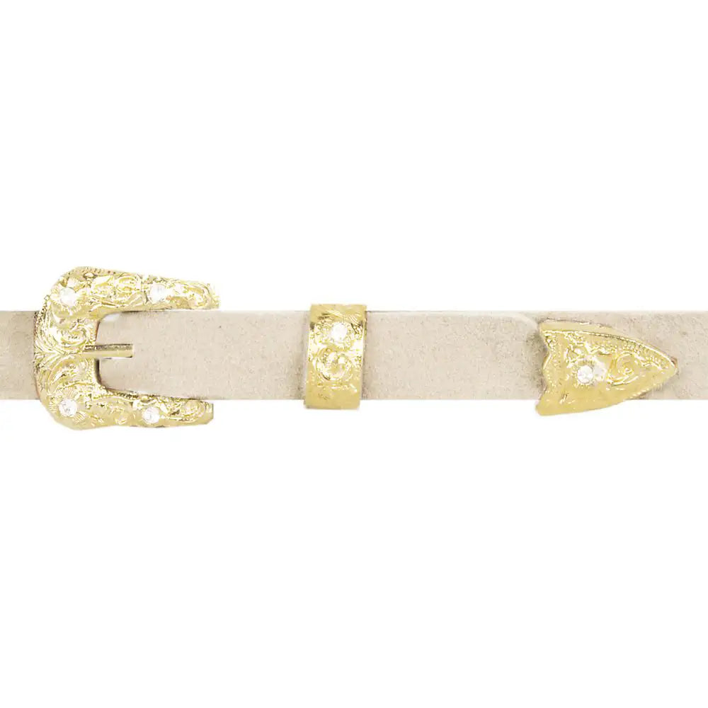 • Self Band with Crystal Inset 3-Piece Gold Buckle Set