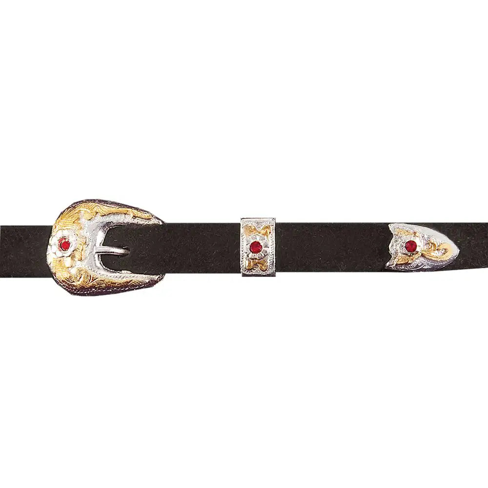 • Matching Hatband with 3-Piece Buckle Set with Ruby Stones