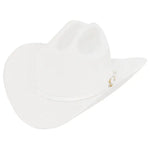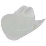 This hat’s 100% real rabbit fur construction provides both softness and resilience, making it a luxurious yet durable choice. With a classic 4" Cattleman Crown and a 4” brim, the Real Cowboy Hat offers a timeless silhouette that stands out at any event. The matching hatband features a three-piece buckle set adorned with striking ruby stones, adding a pop of vibrant color and elevating the hat's overall appeal.