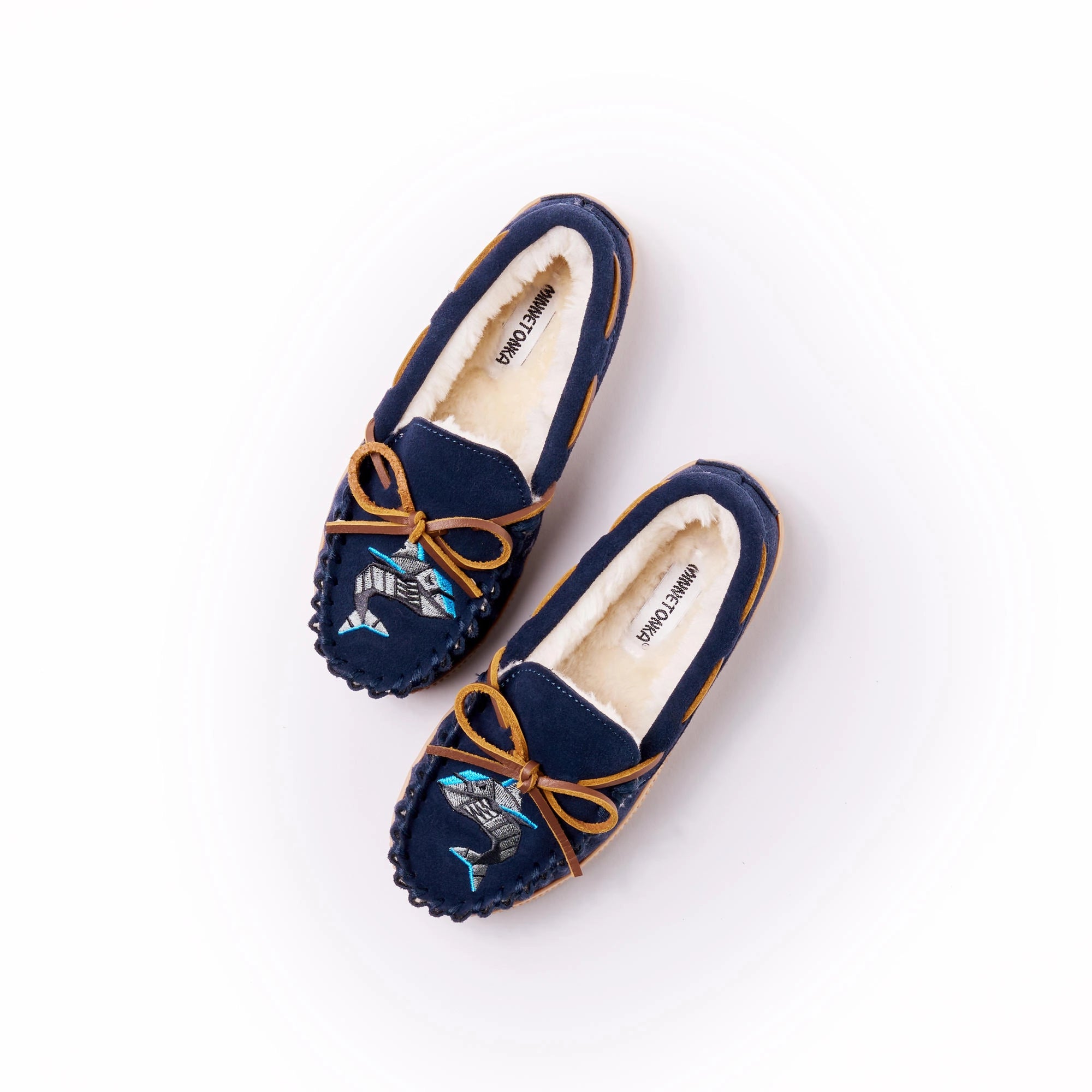 Minnetonka Pile Lined Hardsole Suede (Navy Shark) - Children's Slipper