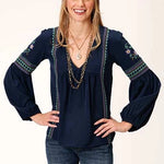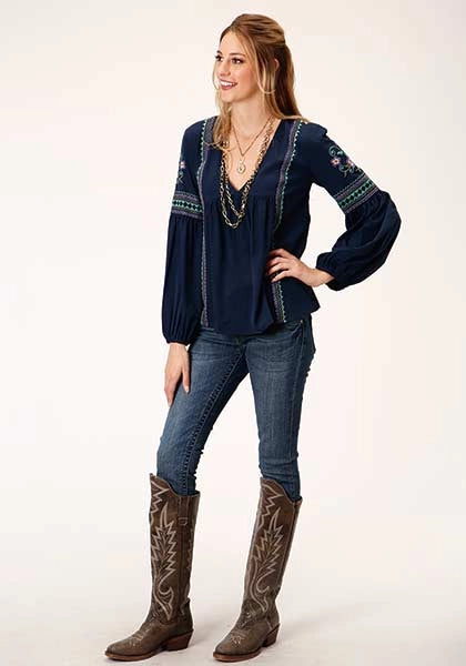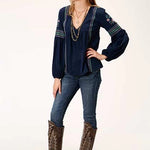 Roper 00860 Crepe V Neck (Navy) - Women's Western Blouse