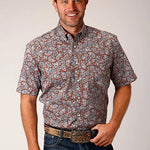 Roper 1453 Spring Paisley (Orange) - Men's Short Sleeve Shirt