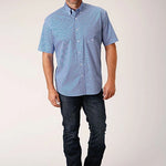 Roper 1460 Stretch Diamond Star (Blue) - Men's Short Sleeve Shirt