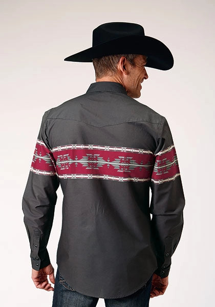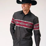 This men’s long sleeve shirt from the Roper Vintage Collection features a bold Aztec border print that brings a touch of southwestern flair to any outfit. Made from 100% cotton poplin, it offers a lightweight and breathable feel, ideal for layering or wearing on its own. The spread collar and welt pockets with flaps give it classic western styling with functional detailing.